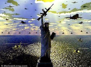 Não é à toa que encimando a cúpula do Congresso yankie tenha uma estátua da Liberdade com uma espada na mão.