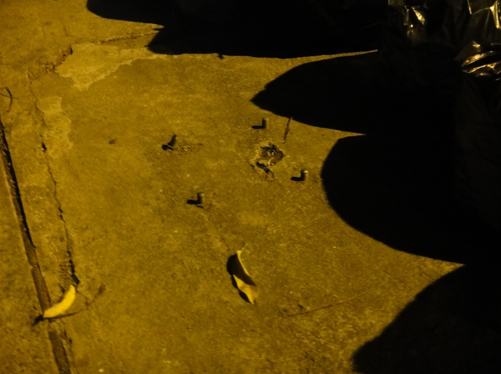 Sombra das folhas na calçada que deixaram os parafusos para o pedestre tropeçar.
